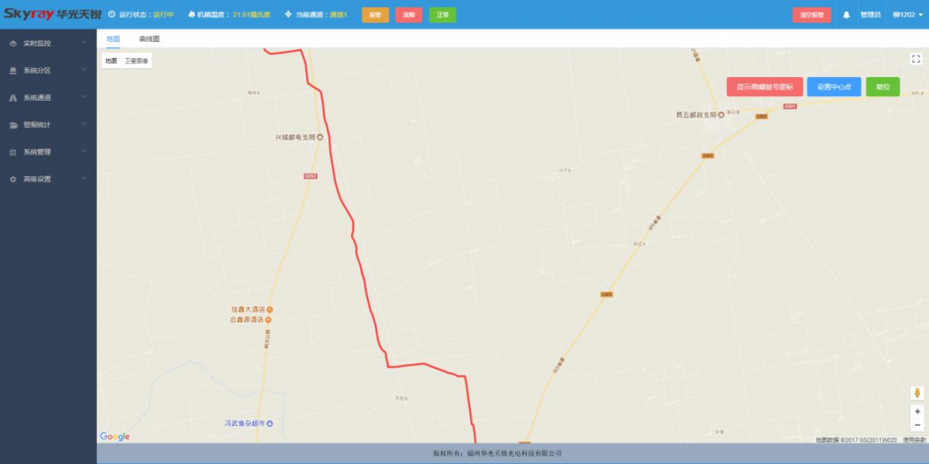 天然氣管線泄漏安全監(jiān)測系統(tǒng)采用目前先進(jìn)的管道溫度系統(tǒng)監(jiān)測技術(shù)。僅用天然氣管線中的通訊光纜的一根光纖就可實現(xiàn)長達(dá)幾十公里的天然氣管道泄漏定位報警。通過基于通訊光纜的分布式光纖測溫技術(shù),對天然氣管線進(jìn)行在線溫度分布監(jiān)測,就能夠通過管道溫度異常點(diǎn)的探測,準(zhǔn)確發(fā)現(xiàn)管道的泄漏點(diǎn),并及時的進(jìn)行報警和定位。如果天然氣管線發(fā)生泄漏,高壓氣體的體積膨脹將引起漏點(diǎn)附近溫度的下降,分布式光纖測溫系統(tǒng)同樣可通過溫度異常點(diǎn)的探測,發(fā)現(xiàn)并定位天然氣管線的泄漏點(diǎn)。通過對天然氣管線進(jìn)行在線的分布式溫度監(jiān)測,并將系統(tǒng)設(shè)備接入管道監(jiān)測系統(tǒng)局域網(wǎng),通過網(wǎng)絡(luò)信號可將溫度信息上傳給中央服務(wù)器。可在整個天然氣管線線路發(fā)生管道泄漏以及事故初期階段,第一時間發(fā)現(xiàn)并報告預(yù)警點(diǎn)的具體位置、溫度變化、溫度下降走向等信息數(shù)據(jù),為天然氣管線管理部門及其它相關(guān)部門及時定位、分析可能發(fā)生的管道泄漏事故提供可靠堅實的信息獲取手段,為天然氣管線系統(tǒng)安全運(yùn)行提供高效的安全保障。本系統(tǒng)具有本質(zhì)防爆、抗強(qiáng)電磁干擾、電絕緣性好、防雷擊、高精度、重量輕、體積小等優(yōu)點(diǎn),適合在易燃、易爆等高危環(huán)境應(yīng)用。設(shè)備聯(lián)網(wǎng)后,通過載入百度地圖顯示光纜所在位置地圖,并設(shè)定中心點(diǎn),選定當(dāng)?shù)厮谖恢茫筛鶕?jù)管道的走向在地圖上標(biāo)出光纜走向圖,當(dāng)發(fā)生報警時,界面會出現(xiàn)一個彈窗,顯示報警地點(diǎn),報警時間等。